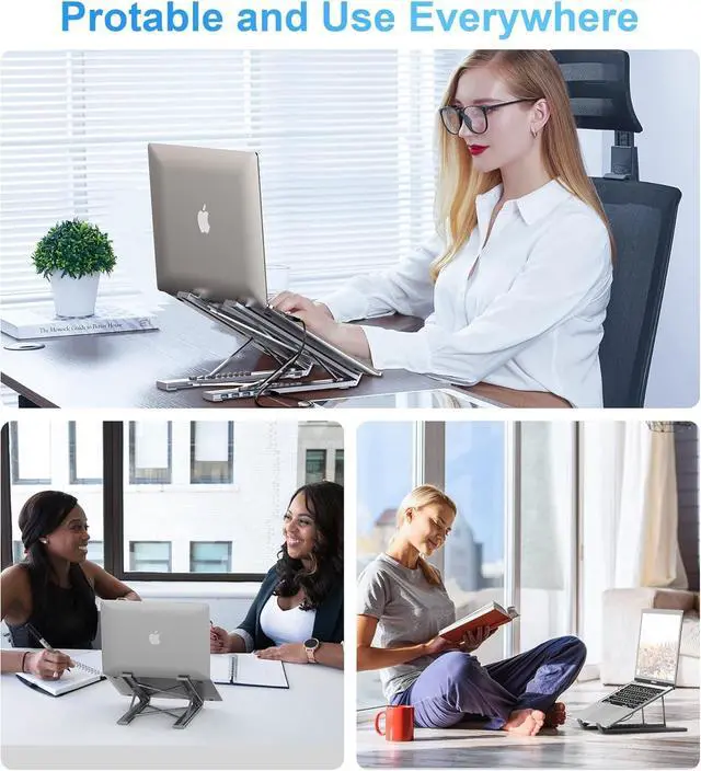 ^^ The triangle support design makes the laptop stand more stable. The non-slip silicone pad on the stand can fix your laptop in place and protect your device from scratches and slipping. The forward-tilt angle and open design provide increased ventilation and more airflow to cool your laptop while operating other than lying flat on the table.