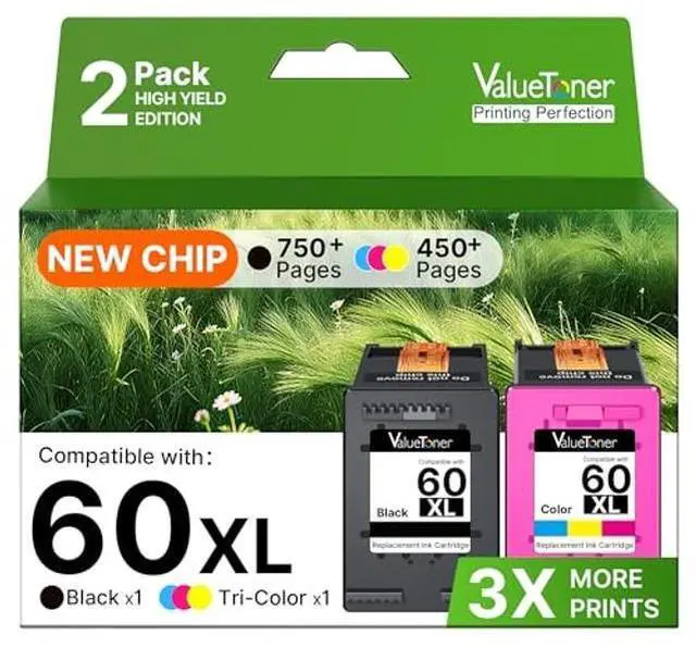 High Yield: Up to 600 pages per for hp 60 black ink cartridge xl & 440 pages per for 60xl color ink cartridge (5% coverage) ^^