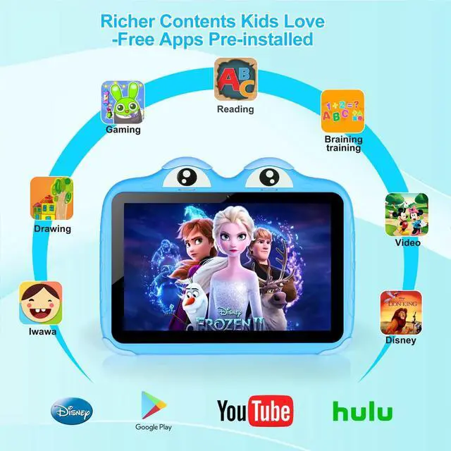 Games: IWAWA App is PRE-INSTALLED on the tablet, this toddler tablet for kids equips with thousands of FREE childproof games and apps available for download such as games, learning, story, art, music, calculator, draw and so on. You can download more applications like YouTube Kids, ABC Mouse from Google Play. A great starter kids tablet for toddler ^^ Parental
