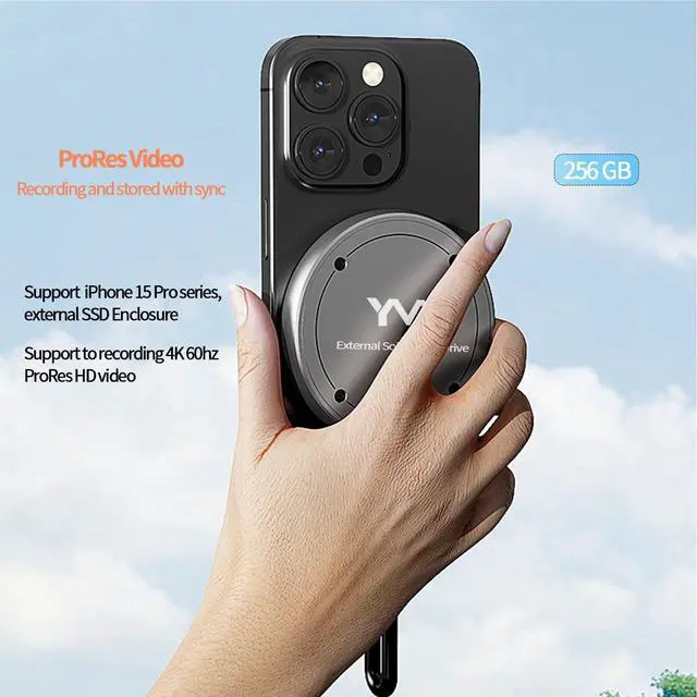 Pro/Pro Max]: Enabling to easily record Apple ProRes video with 4K 60Hz directly to the SSD, And it doesn't take up phone`s internal memory space. This feature is only supported by the newer iPhone 15 Pro/Pro Max; After recording just quickly ingest that video into the editing rig by simply plugging this 256GB SSD directly into the computer! (NOTE: iPhone 15/15 Plus and other type C devices need to manually transfer storage. ) ^^ [Stylish and
