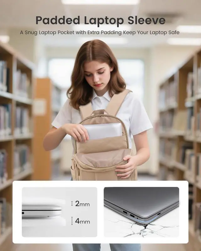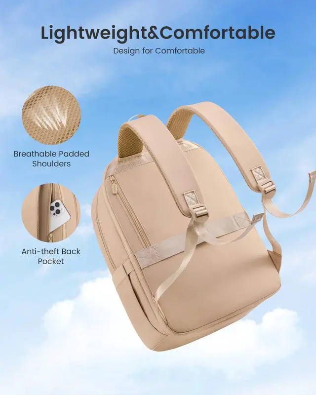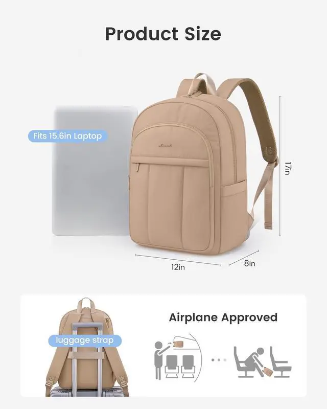 Dimensions: 17128 inches. ^^ Padded Dedicated Laptop CompartmentThe dedicated separate laptop compartment with cushioned cotton sewn around, fits up to a 15.6 inch laptop or 12.9 inch iPad. Cushioned dividers between layers provide maximum protection for your electronics. Great idea for a laptop backpack and a work backapck. ^^ Lightweight & Comfy Work BackpackDesigned for effortless carry, this work bag features padded cotton filling, weighing only 1.65 lbslight yet soft. With thickened, breathable shoulder straps, even when filled with heavy books and supplies, it also delivers all-day comfort for daily commutes or travel. ^^ Great Travel Backpack TSA friendly, The built-in luggage strap lets you slide it over suitcase handles for hands-free travel. Whether you're going on summer holiday, weekend getaways, family trip, hiking, camping, or any other outdoor activity, our laptop backpack is a reliable companion, a real travel essentials you must have. ^^ High Quality & DurableOur college backpack is crafted from high quality material, tear-resistant fabric, smooth and sturdy zippers, making it a stylish and durable casual daypack backpack, also an ideal gift for your friends, mom or teachers.