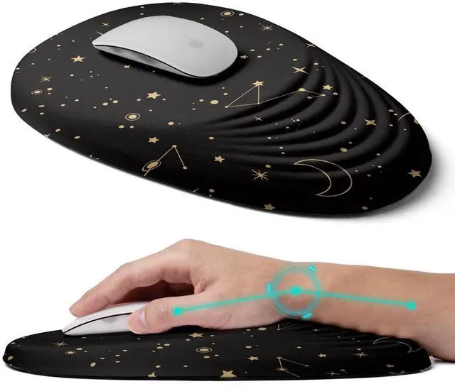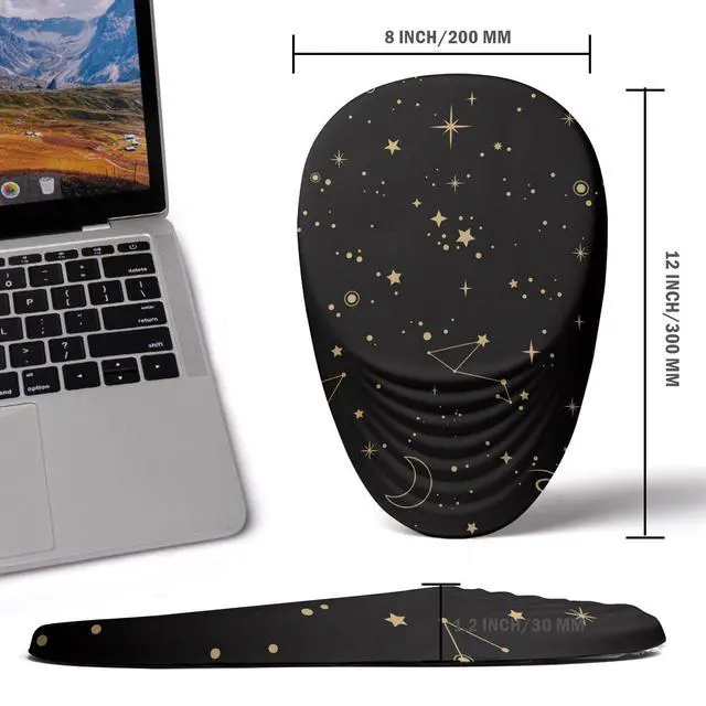 Ergonomically Design We designed the tilt angle on the surface, a three-dimensional geometric irregular shape part can totally support your wrist and promoting healthy blood flow on the arched part. The ergonomic structure design of the arched part provides the maximum comfort to your wrist. Your wrist will be no longer stressed. ^^ PERFECT SIZE 12x8x 1.2 inch (300x200x30mm) Comfortable size meets different usage habits and scenarios, The right size and enough space can make the mouse operate more freely. ^^ High Quality Materials It is made of 100% memory foam. The back is made of Anti-slip PU.