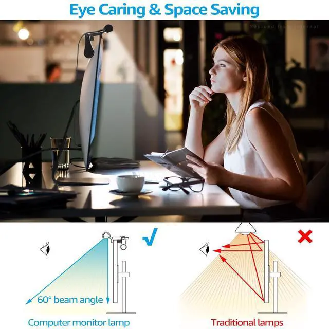 Suits Any Monitor: The 15.28 inch task lamp can work perfectly on desktops with 21-32inch monitors. The weighted clip can stably rest on nearly any monitor with thickness from 0.6 inch to 1.4 inch ^^ Auto-Dimming Function &