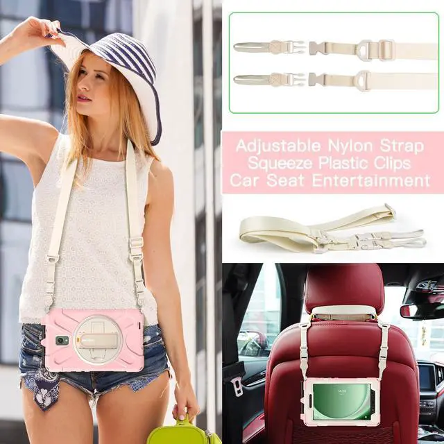 Hand Strap: Located on the back of Galaxy Tab Active3 8 inch heavy duty cases, built-in 360 degree rotating kickstand and adjustable handle hand strap provides a more flexible and convenient way to use your tablet during work, study or journey, ideal for students, teachers, engineers, cashiers and waiters, etc. ^^ Adjustable shoulder strap You can remove or adjust the strap to a comfortable length, then this Galaxy Tab Active5/Active3 tablet can be carried in a landscape/portrait modes more securely during hiking, traveling or other outdoor activities. Also, the strap allows to hang up your tablet behind car seat for entertainment for kids to kill free time or keep quiet. ^^ Customer ProblemOur professional service team is here to help you solve your problems. Please contact us via email with any questions.