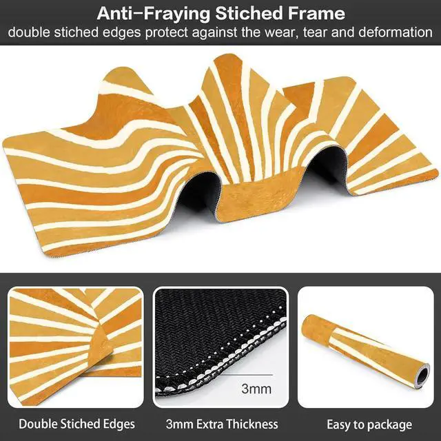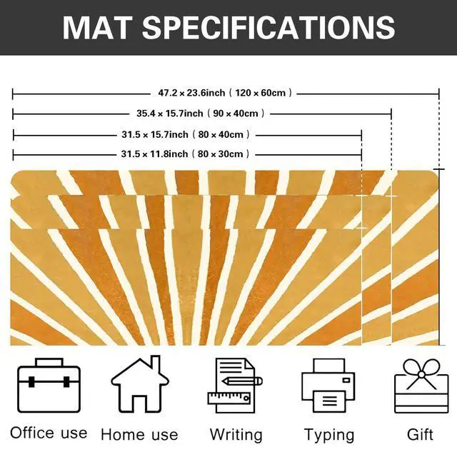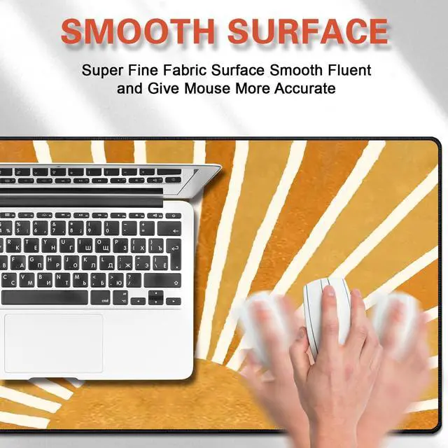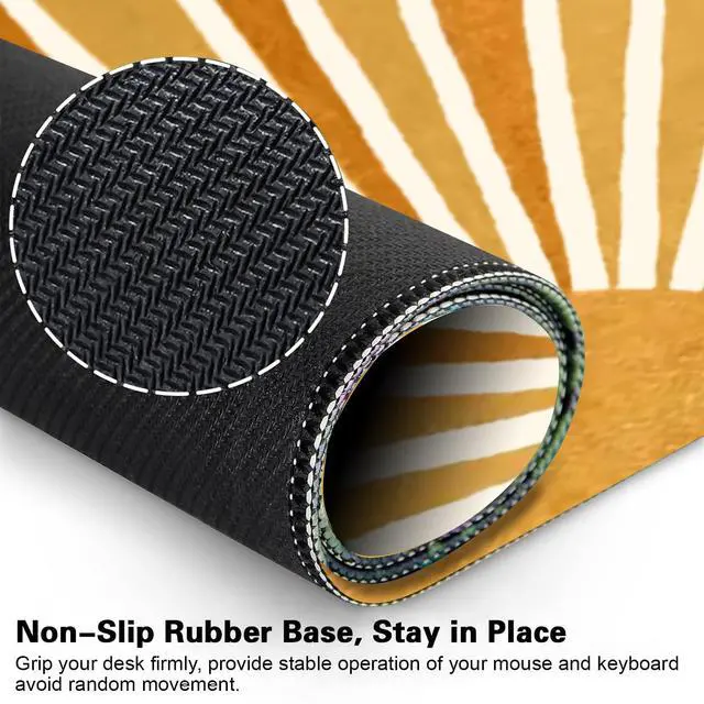 Mouse Pad SizeThe size of this mouse pad is 31.515. 70.12 inches (800mm x 400mm x 3mm), accommodate your laptop, mouse and keyboard. Its comfortable and smooth surface can be work as a mousepad, desk mat and writing pad. ^^ Non-Slip Rubber BaseThe bottom base of the desk mouse pad is made of good rubber, can effectively prevent the mouse from sliding, strong adhesion, allows for optimum speed and accurate control. ^^ Smooth SurfaceCovered by the superfine fabric, the mousepad has a soft and smooth surface, helps you track the mouse fast and accurately, maximally enhances your gaming/working experience.