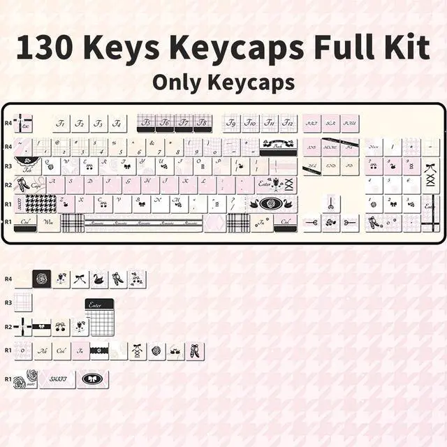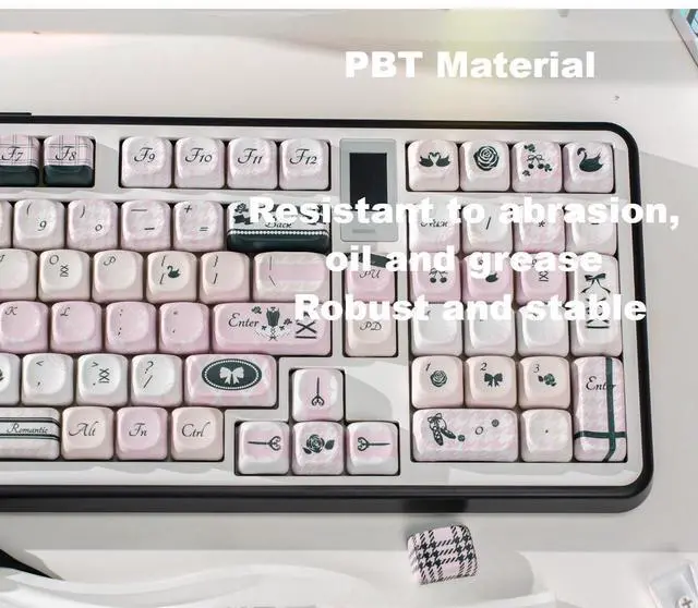 Durable PBT Keycaps: Made from high-quality, textured PBT, these keycaps resist wear, fading, and oils, offering a long-lasting, comfortable typing experience with clear legends and a charming, rounded design5. Dye-Sublimation ProcessAdvanced dye-sublimation technology infuses color deep into the keycaps, producing clear, vivid fonts and patterns. The result is a long-lasting, premium look with vibrant designs that wont fade or wear off over time