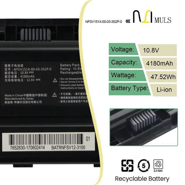 Shinelon: T50TI, T50-781S1N, T50-581S1N. ^^ Compatible with Part NumberFit for NF5V151X-00-03-3S2P-0 GE5SN-03-12-3S2P-0 GE5SN-00-01-3S2P-1 GE5SN-03-12-3S2P-1 GI5KN-00-10-331P-0. ^^ Safety Above AllOur batteries are certified by CE, FCC and RoHS to ensure your safety, and packed with prevention measures like short circuit, overheat and overcharge protection. Our laptop batteries are made with premium materials and circuit boards to ensure performance and durability. ^^ Give Customers the