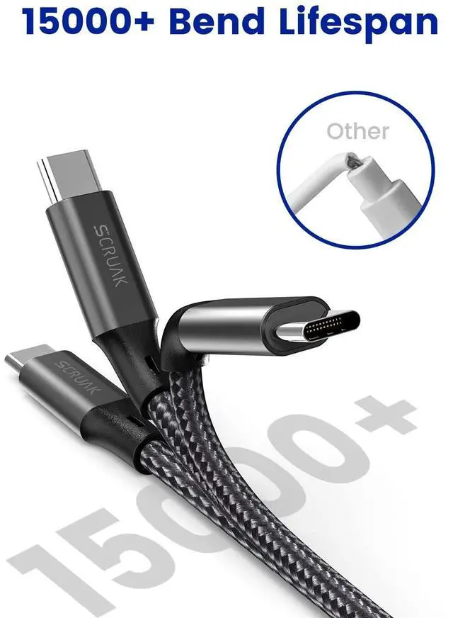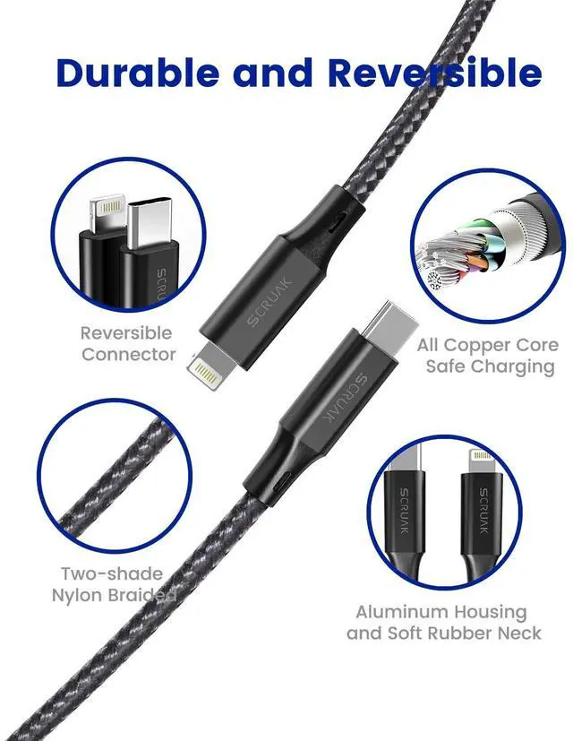 ^^ Durable Wire Protection: The shielding shell of USB-C to lightning cable is made of nylon braided layer to protect the wire, improve durability and reduce wear. Each end is aluminum housing with a soft rubber neck that helps make them more durable. This long iPhone charger cord has been tested to have a 15000+ bend lifespan which lasts longer than standard cables. The nylon braided lightning cable is more durable, bendable, and it has extremely high resistance against wear and splitting.