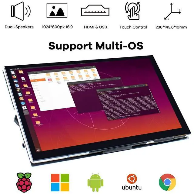 7inch capacitive touch screen, 1024x600 resolution, IPS full angle display, with the characteristics of real and vivid color display and excellent dynamic image quality. tempered glass touch panel, supports five -point touch. ^^ Perfectly adapt to the Raspberry Pi. The packaging comes with the Raspberry Pi 3B/4B adapters, making the screen and the motherboard connect more convenient. Also you can use it with other mainstream development boards such as Banana Pi, BB BLACK etc. ^^ Support audio output, with portable stereo dual speakers and 3.5 mm headphone jacks, which provides excellent audio experience.