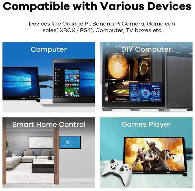 In addition you can easily adjust the volume and brightness settings by the dial switch. ^^ Plug and use without driving. It can not only be used as a game console monitor, but also can be used as a computer split screen display and supports Win10/Win8/Win7 system. DIY by yourself. ^^ HDMI cables and USB power cables are provided, especially the HDMI adapters on the Raspberry Pi board so that you can easily connect without additional cables, and use with a stand to make your desk cleaner and easier to operate!