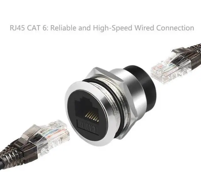 IP67 Waterproof Design: Equipped with an additional cover, this RJ45 panel mount bulkhead provides a waterproof and dustproof solution, ensuring a secure Ethernet pass-through coupler connection in challenging environments.
