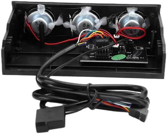 Feature: 1. Built-in computer speakers with small space occupation, easy for you to use and store2. There are three sets of speakers design, which realize stereo surround effect3. PC front panel speaker come with simple and easy installation4. High-quality ABS material, impact resistance, scratch resistance, environmental5. The product possess heat resistance, low temperature resistance, good