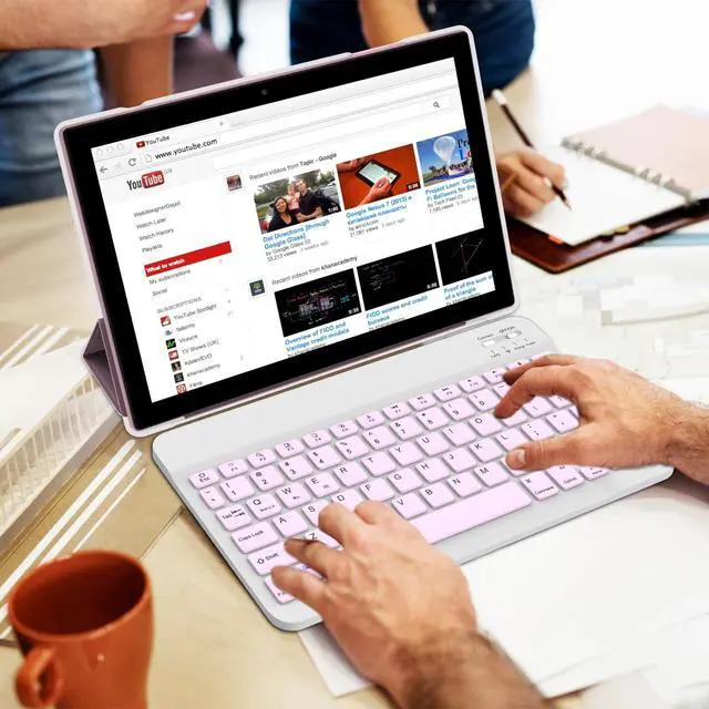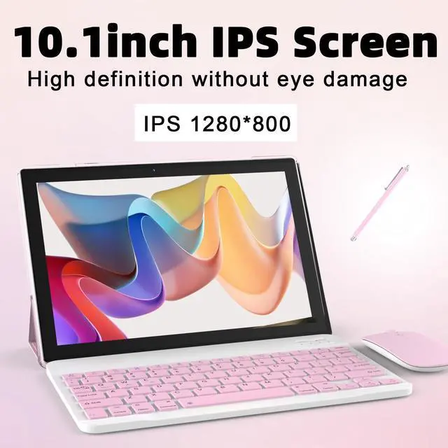 ^^ 2 in 1 Tablet Computer with Accessories This 2 in 1 computer tablets with Bluetooth keyboard, wireless mouse, foldable protective case, stylus, and USB-C cable. So that this 10.1 inch tablet can be used as a laptop or use as a traditional tablet. Tablet adopt a 6000mah big capacity battery and a low-power processor. Achieve up to 10 hours mixed use. Perfect for reading, watching movies, dramas. Tablet includes all the accessories you need, easy package save much. ^^ 10 " Large screen + Eye protection The resolution of a home tablet is 1280 * 800 IPS.