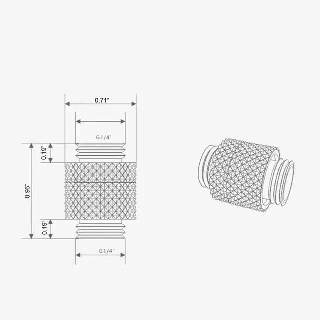 The Dracaena. io 6 Pack G1/4" Rotary Male to Male Extender Fittings is designed to maximize flexibility and reliability in custom PC water cooling loops. With a compact 24mm height and 18mm outer diameter, these fittings feature industry-standard G1/4" threading, making them compatible with CPU blocks, GPU blocks, radiators, reservoirs, and pumps. Constructed from nickel-plated brass, they deliver excellent corrosion resistance, heat tolerance, and long-term durability. The rotary design ensures smooth alignment in tight spaces, simplifying loop building while maintaining a clean, professional look.