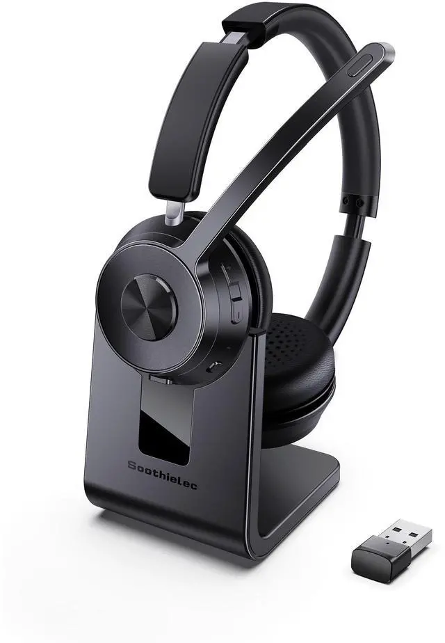 Stable Connectivity: Our Bluetooth headset ensures strong connections with minimal delays because of the advanced Bluetooth chip. It's great for enjoying music and video calls without any lag. Plus, it comes with a Bluetooth dongle for computers that don't have Bluetooth built-in. Works well with popular platforms like Webex, Zoom, MS Teams. etc. NOTEThe USB dongle is only compatible with Windows system, so the KH53 headset can't be used for desk phones or landlines. Remove the dongle when the headset is not in use; insert it gain when the headset is active. ^^ Dual Connection & Extended