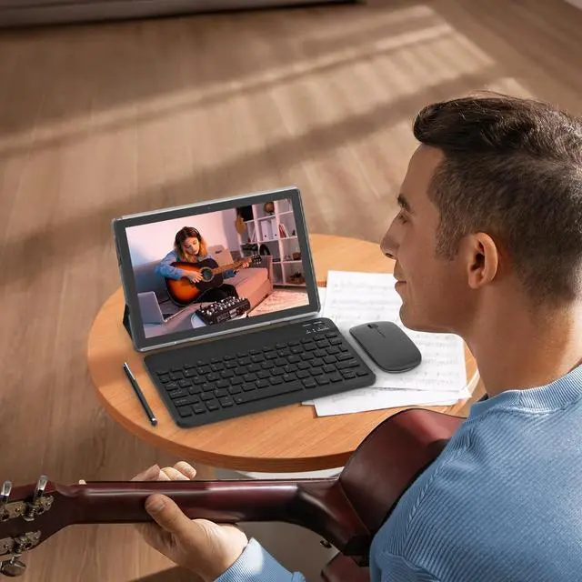Tablet Package include: 1* 10 inch tablet pc, 1* Bluetooth Keyboard, 1* mouse, 1* Standable Protective Case, 1* flexible stylus, 1*Type C Cable. Our tablet come with 1 year warranty and life time tech support. Any question, please feel free to contact us.