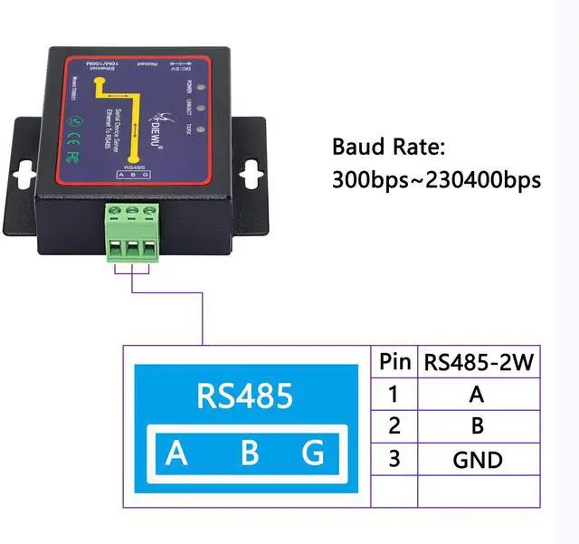 Duplex) Pin Definition: RS485 A+, RS485 B-, GroundNetwork