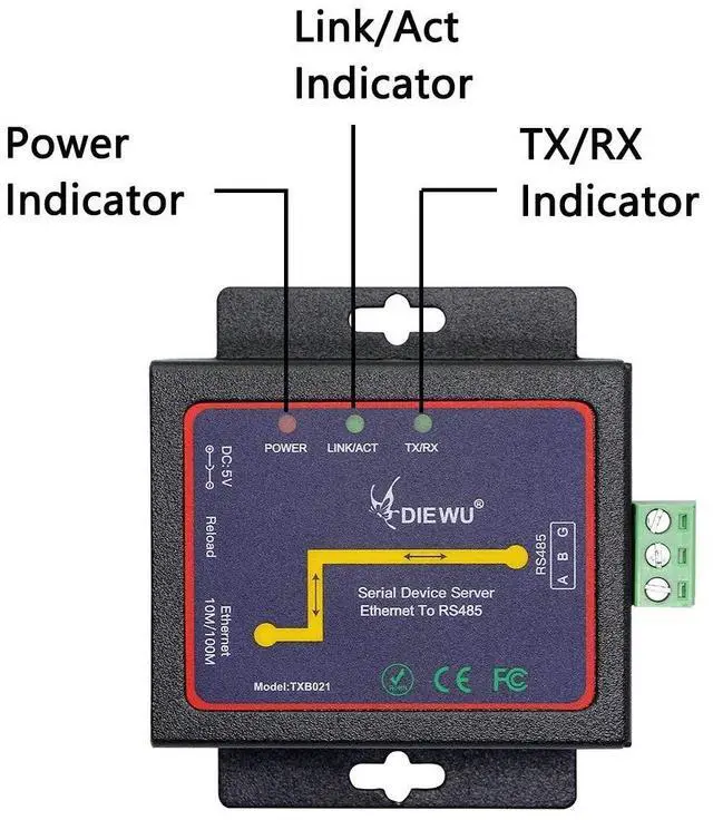 Indicator: DC 5V Power, Link/ACT, TX, RX, Power Consumption< 1.8 WOperating Temperature -10-50.