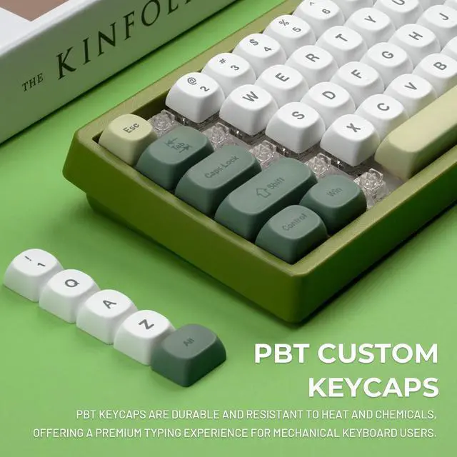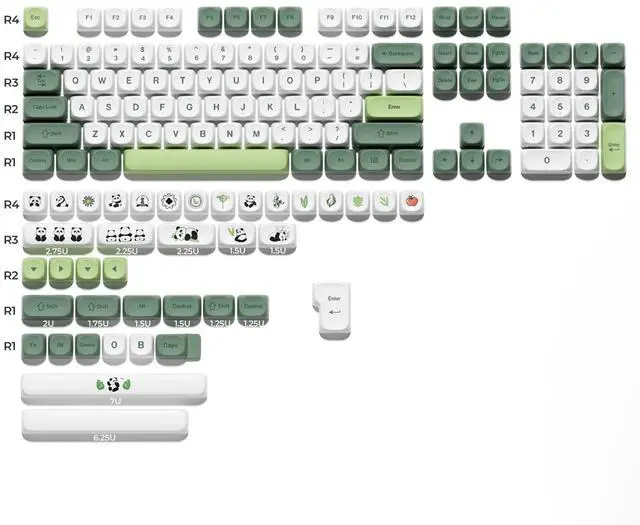 MOA Profile keycaps: The 1u keycaps are round and very cute, adding a unique style to your keyboard and making it stand out. In addition, moa profile provides a comfortable typing experience and reduces finger fatigue. ^^ Unleash your inner panda lover143-Key Green Panda Bamboo Theme Keycaps! Crafted with a delightful touch of cuteness and a splash of vibrant green, these MOA Profile keycaps are here to transform your keyboard into a whimsical masterpiece. ^^ Creamy Sound ProfileExperience the pleasure of typing with these keycaps that are tuned to produce a creamy and satisfying sound. The high-quality PBT material ensures each keystroke is met with a soft, yet tactile feedback that typing enthusiasts will appreciate. ^^ Exquisite Dye-Sublimation TechniqueThese keycaps boast a stunning, long-lasting design that will turn heads and spark joy. Whether youre typing away during work or gaming into the night, these high-compatible keycaps ensure your keyboard is as functional as it is fabulous! ^^ A tiny piece of artEach keycap is a tiny piece of art, perfectly capturing the essence of those playful panda vibes. So why settle for an ordinary keyboard when you can elevate your setup with these adorable green panda keycaps? Get ready to make typing the cutest activity in your daily routine! ^^ Strong CompatibilityCompatible with ANSI/ISO layout mechanical keyboards, and fits a variety of keyboard sizes such as 60%/65%/75%/80%/100% (61/64/68/82/84/87/100/104/108 keys).