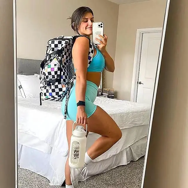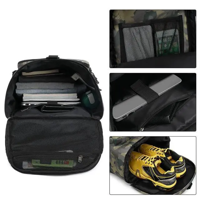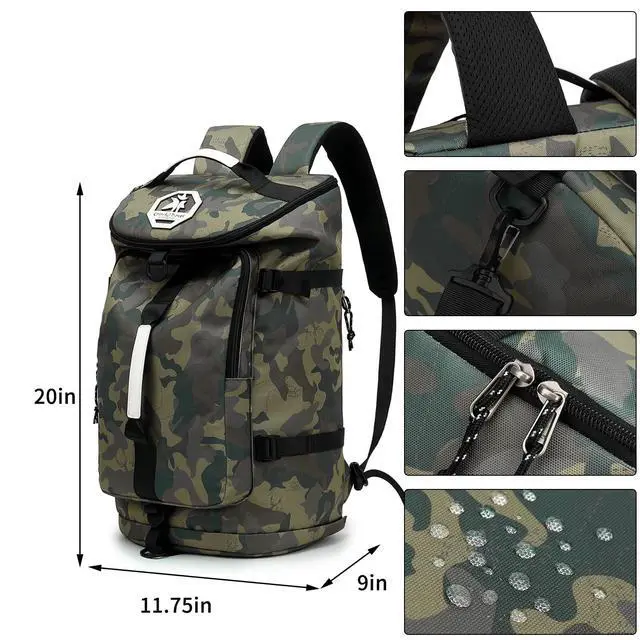 Dimensions 11.75 x 9 x 20 inches (L x W x H). Lightweight, only 1.98LB. ^^ Large Capacity Roomy Space with practical pockets provides you enough items storage and helps you organize them easily, including 1 front pocket/1 main large compartment/2 side pockets (for bottle and umbrella) /1 shoe compartment. The main compartment contains 1 upper mesh zip pocket, 1 notebook compartment, 2 zip pockets, and 2 slots, can hold your iPhone, iPad, pen, keys, wallet, magazine, clothes, and also be placed in cameras, power bank, etc.