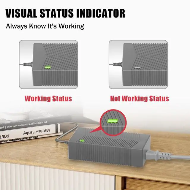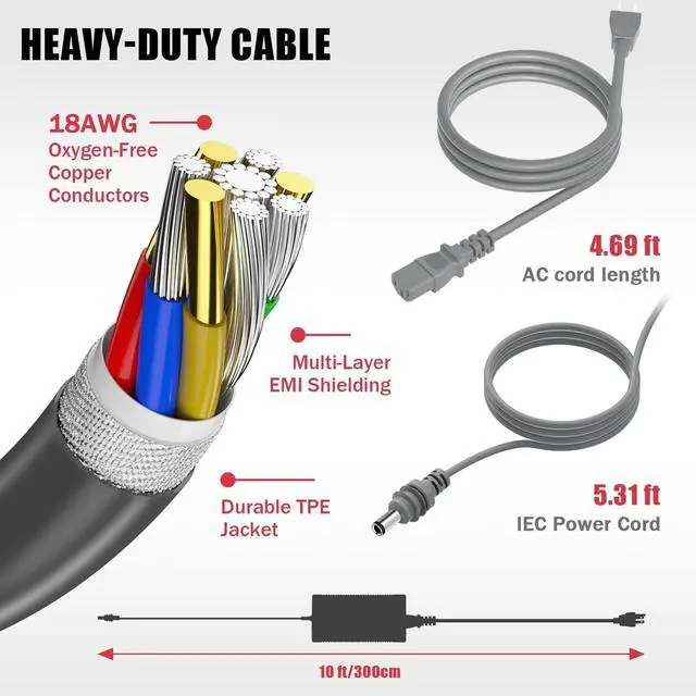 Built-in safeguards include automatic overload, short-circuit, over-voltage, and thermal cutoffs (FCC/CE/RoHS compliant). ^^ Reinforced Casing with Charging Status IndicatorDurable ABS+PC heat-resistant casing withstands extreme temperatures (-20C to 60C). Integrated LED indicator clearly displays operational status (illuminated during charging, off when idle). ^^ Complete Replacement Kit with Zero Setup HasslesComplete kit includes195W power adapter + 1 AC power cord( 4.69 FT). Ready for immediate home or office deployment.