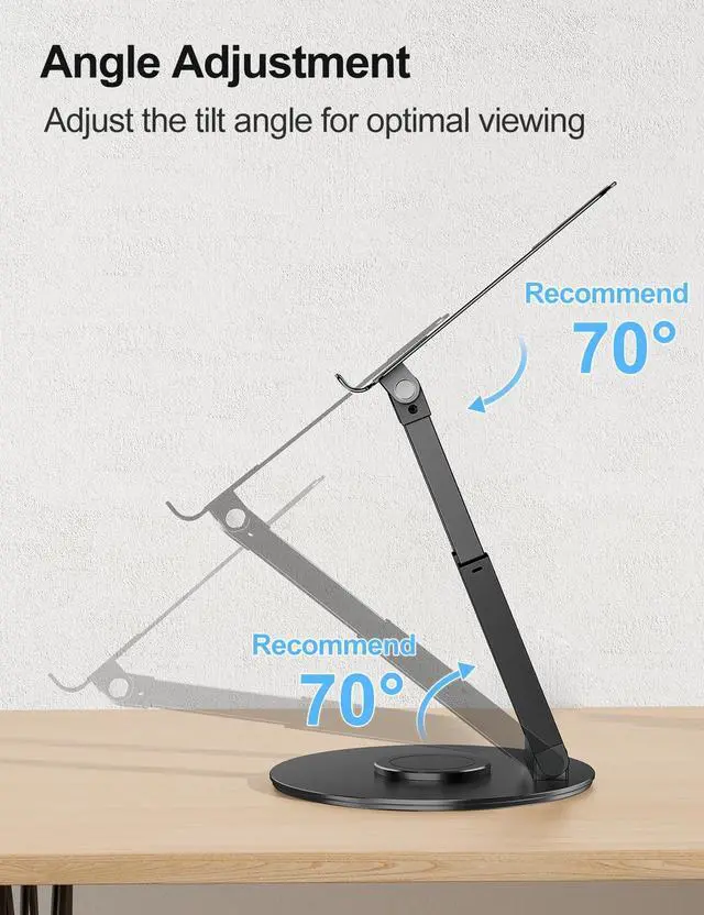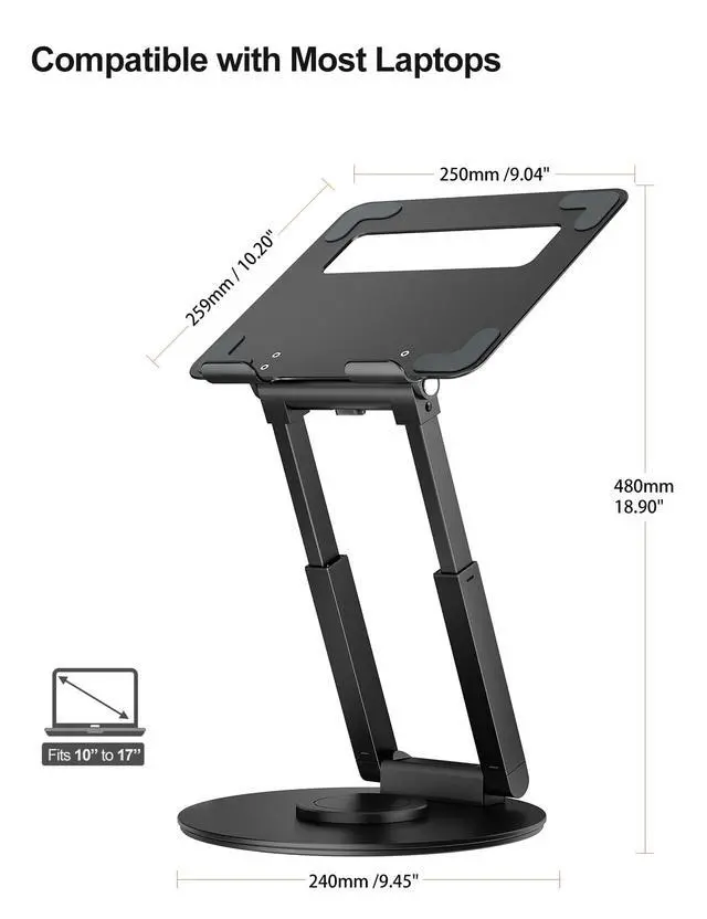 Base: This standing computer stand not only offers an adjustable height range of 2.1" to 21", but also can be rotated 360 degrees, the turntable at the base rotates smoothly, so you can freely move your laptop screen via a light force when you are doing chats with work, ideal for face-to-face use. ^^ Large Base, Enhanced