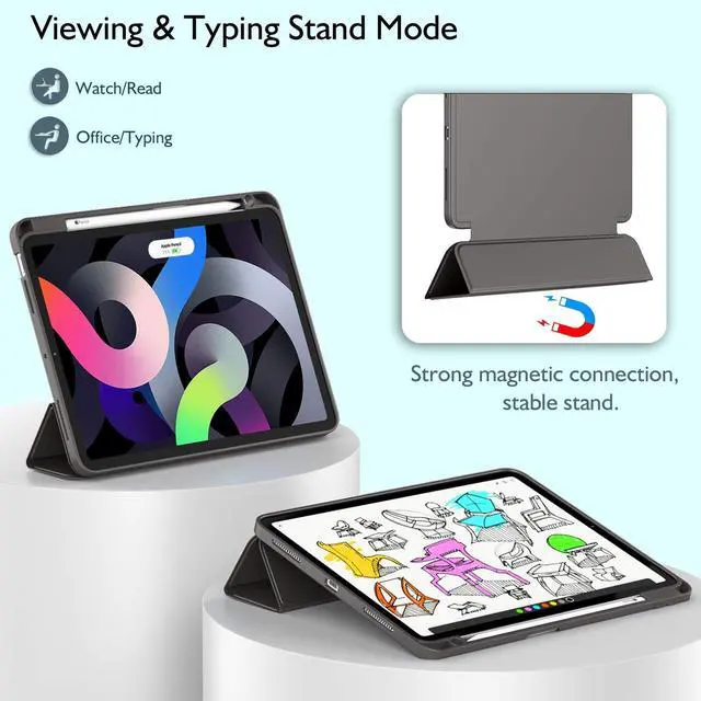 Generation 2022 (model number: A2589 A2591 A2588) / iPad Air 4th Generation 2020 (A2316 A2324 A2325 A2072). Not compatible with any other devices. Please check the back bottom of your iPad to find the model number. ^^ Compatible for Apple Pencil Pro & 2nd Gen & Apple Pencil (USB-C), Support charging and attachment feature. ^^ [Full Protection] Made of PU exterior, microfiber lining and Soft TPU back cover. Provide full body protection against shocks, drops and scratches. ^^ [Support Touch ID and Auto Sleep/Wake Feature] Magnetic smart cover supports auto wake /sleep function. Powerful magnet secures the case closure, easy to snap on and off. ^^ [Different Viewing Angles] Designed with dual standing positions for users to adjust the iPad into different angles.