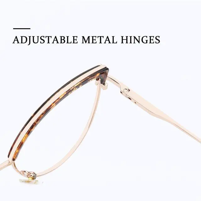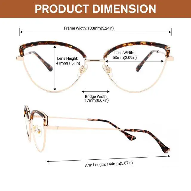 Classic cat eye glasses frames, perfect for women of all ages, exuding timeless elegance. ^^ Constructed with lightweight metal frames, ensuring comfort for extended wear, suitable for everyday use, especially for computer work. ^^ Constructed with lightweight metal frames, ensuring comfort for extended wear, suitable for everyday use, especially for computer work. ^^ Versatile functionality allowing for the easy replacement of lenses to meet your specific needs, whether it be blue light blocking or reading glasses. ^^ Committed to providing premium customer service to ensure your satisfaction and peace of mind.