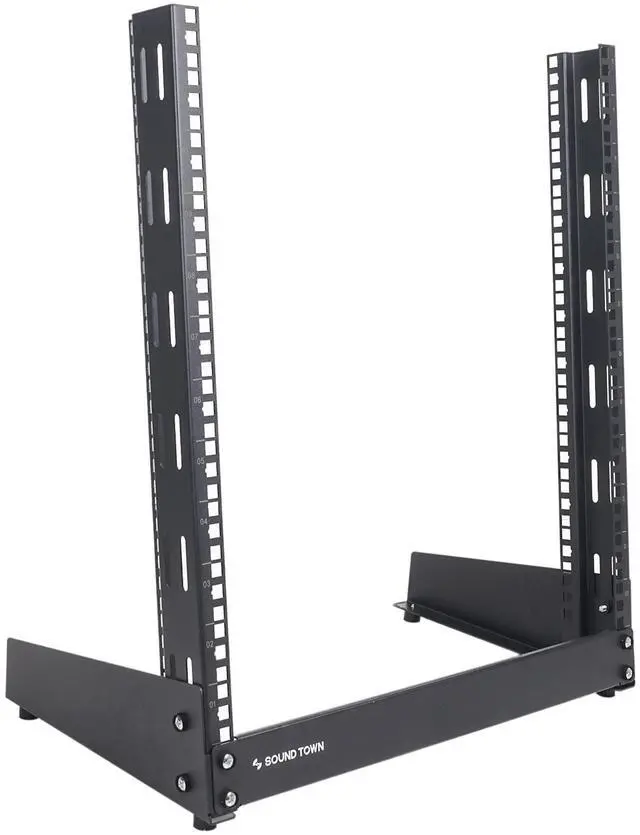 Designed for easy access, the Sound Town ST2PF-12LW is a 12U desktop open-frame rack perfect for mounting small A/V and IT equipment. It features a 2-post open frame design with a small footprint to save space. Made from SPCC cold-rolled steel, it is light weighted and sturdy, ensuring a safe mounting solution for your mission-critical equipment. The desktop rack is compatible with 19" rack-mountable devices such as pre-amps, microphone receivers, processors, network switches, patch panels and more. Itas ideal for home studios, laboratories, network rooms, and other IT locations.