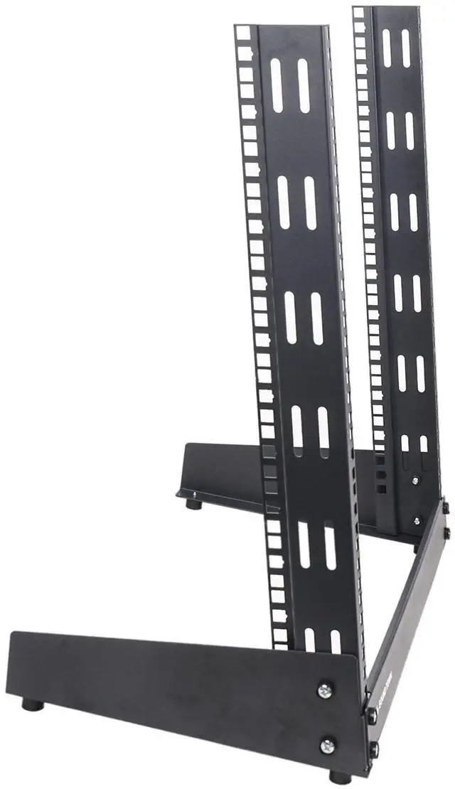 OPEN-FRAME DESIGN: 2-post open-frame 12U studio and server rack, rests on desktop or floor for organizing and installing equipment and cabling