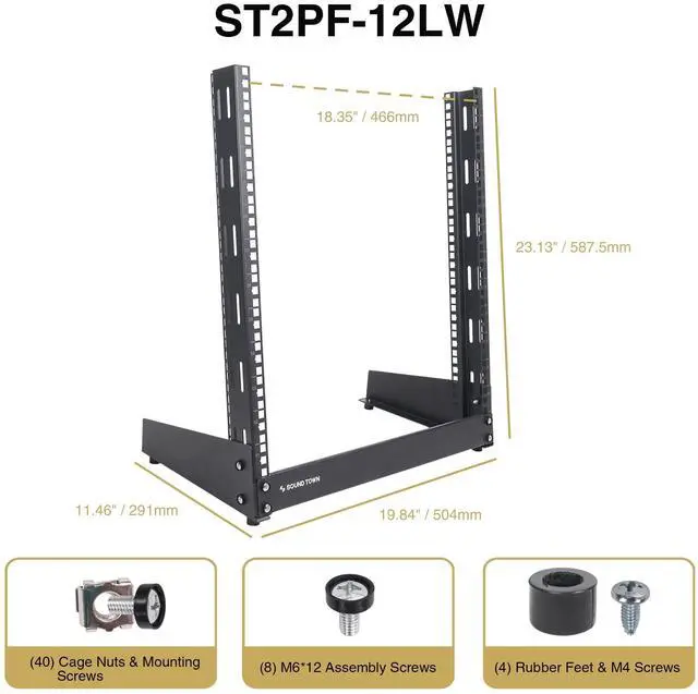 FEATURES STURDY YET LIGHTWEIGHT: Made from heavy-duty cold-rolled steel with 12U rack space, 19-inch width, supports up to 140 lbs