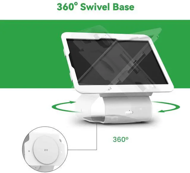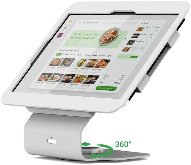 ^^ 360 ROTATION BASE: Commercial iPad tablet stand with 360 swivel base, displaying conveniently between cashier and customer.