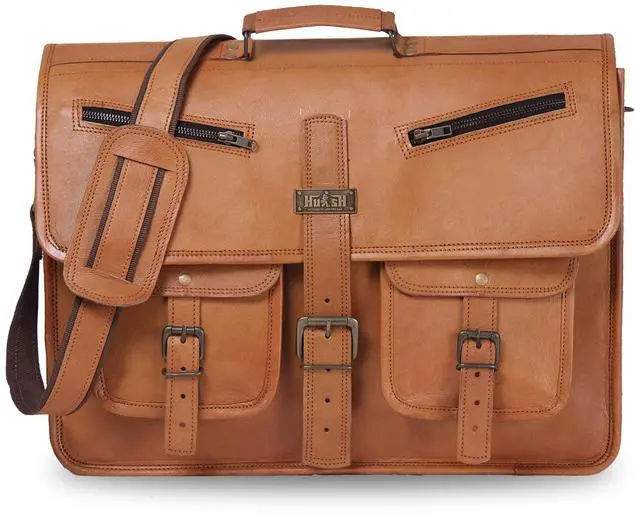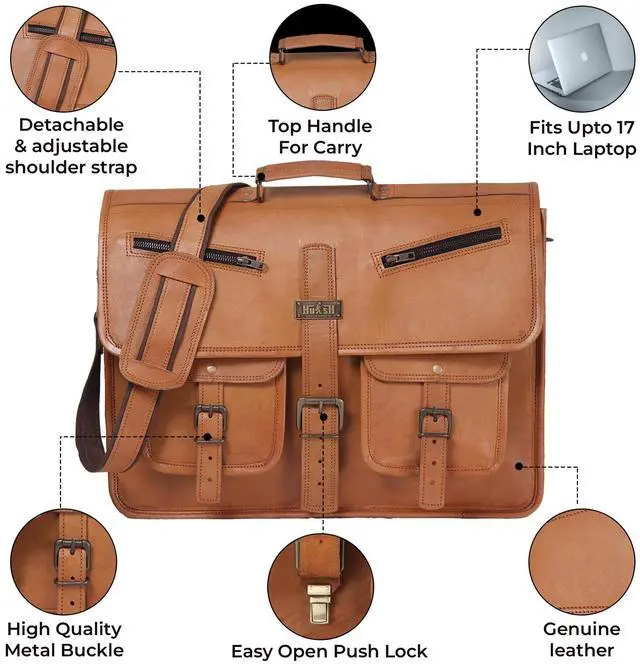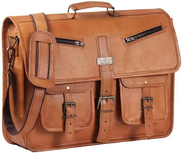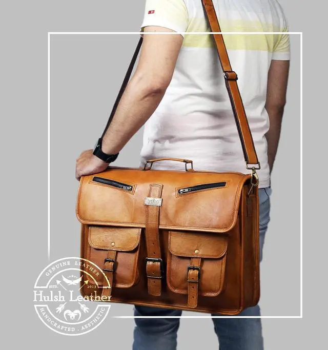 HULSH LEATHER is a company that you can rely on for your leather bag needs. This handmade vintage look leather bag is a perfect accessory for anyone who loves class and style. This bag has a beautiful vintage look that will make you stand out from the crowd. It has a generous size of 18" width x 13" height x 5" depth, and it features a sturdy top handle and an adjustable as well detachable shoulder strap. You can easily carry your laptop, tablet, device, magazine, book or iPad in this bag.