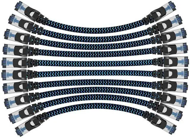 CABNEER Cat8 Ethernet Cable 12 ft 10 Pack, High Speed 40Gbps 2000MHz, Braided, Blue, Compatible with Router, Modem, Laptop, PC, Gaming