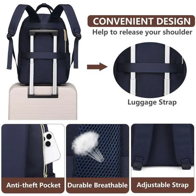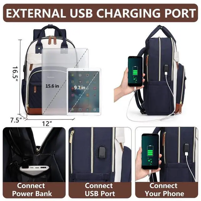 Waterproof travel backpack fits under the seat also meets airline carry-on requirements. Adjustable shoulder strap design with mesh fabric for breath ability, it can distribute the weight of bookbag decently on our back pack, providing you with more comfort during your trip. ^^ Work Backpack with USB Charging Port- 15.6 -inch backpacks for women have an external USB charging port and Set-in charging cable that can be easily connected wherever you are. It is more convenient and comfortable for you. (POWER BANK IS NOT INCLUDED) Womens laptop backpack is the best choice for you.