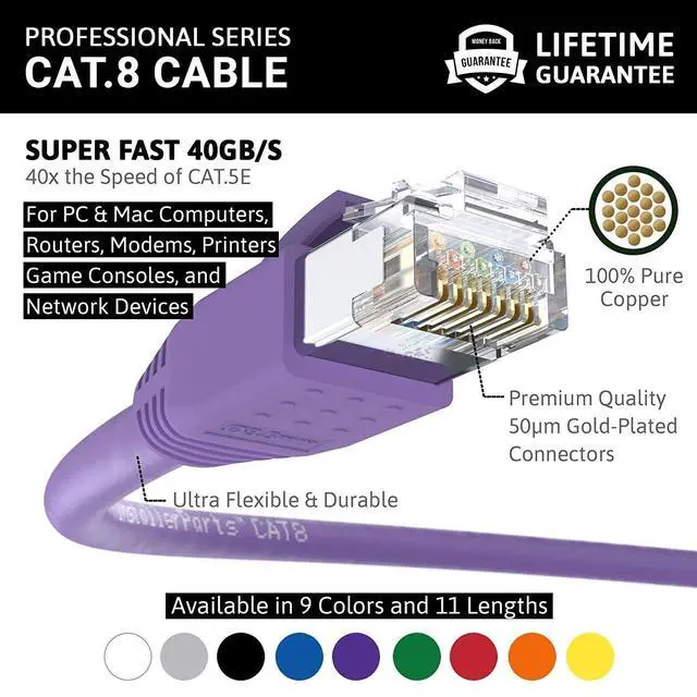 ^^ Maximum Compatibility: Use The Cat8 Patch Cable To Connect Devices On A Local Area Network (Lan), Such As Laptops, Pcs And Mac, Computer Servers, Printers, Modems, Routers, Switch Boxes And More. Tia/Eia* T-568B Standard Wiring. Ul/Cul Listed. Rohs.