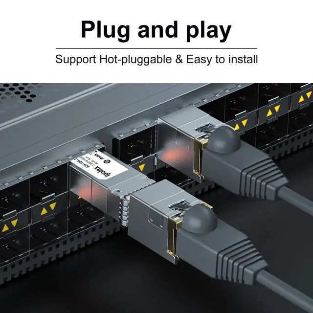 Dat Rate: 10Gb/s, RJ45 SFP+ Copper Connector, Supports up to 30m over Cat6a/Cat7 and up to 100m over CAT5/5e at lower speeds.
