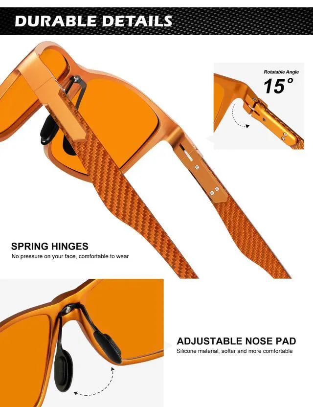 ^^ Premium Temple Material: With superior Al-Mg and carbon fiber composite temple, this type of blue light blocking glasses for men is ultra-light than pure metal frame, also more sturdy. No more worries about broken temples. As more suitable for anyone who often work or play games by the computer, do not miss this pair of practical and classic blue blocker glasses. ^^ Take Care of