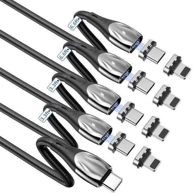 Smart Chip]: The magnetic charging cable is made of premium nylon braid, which adds extra durability and kink-free, no need to worry about this magnetic USB C cable quality. ^^ [What You Get] 4 x 100W Magnetic Charging Cables( 3.3 / 3.3 / 6.6 / 6.6 ft), 8 x Magnetic Tips. 30 days free money back and 12-months warranty. If you have any questions about the product and service, please feel free to contact us. We will reply and solve the problem within 24 hours.