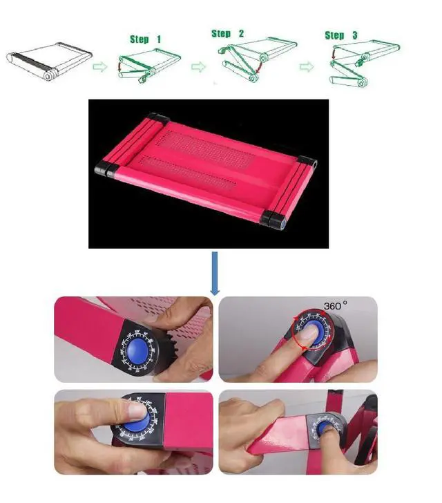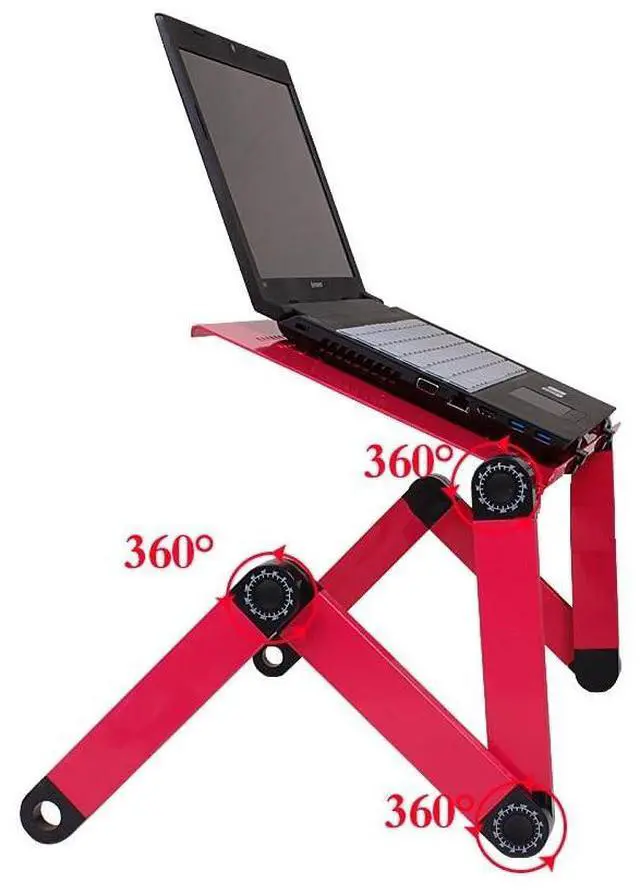 ^^ Material: Aluminum. Our desk laptop stand is made of lightweight, high-strength aluminum tray and ABS plastic auto-locking joints. It can better absorb and discharge heat for laptop to prolong the service life of laptop. ^^ Hmax = 48cm. Suitable and compatible for up to 17 inch / 17" MacBook Air/Pro, Dell, HP, Lenovo and all laptop/notebook/tablet/computer/magazine/book/iPad etc. An extra anti-slip clip on the laptop table tray is designated to clamp the stuff in place. You may use it as a book stand mount holder and TV bed tray. ^^ Smart design, highly functional with multiple uses, suitable for all settings, easy storage and portability. The multi-angle folding performance makes the desk act as computer desk, desk, book stand, snacks tray in various places like bed, sofa, floor and office, bringing in much convenience to your life. ^^ Enhanced Heat Dissipation Design is available now! The Built-in CPU fans are powered by a USB cable, 2 fans work, the upgraded design enhances the wind power. The fan blades are used to run at a high speed to achieve fast ventilation and no noise, quickly solve the computer high temperature problem, and protect your computer from harm.