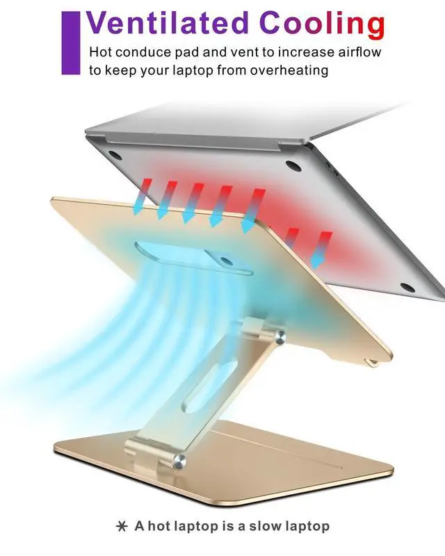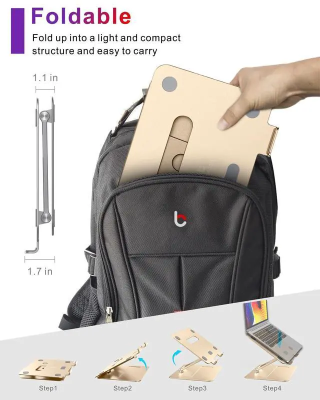 Ventilated Cooling & Foldable: Macbook air stand with aluminum alloy material on top can absorb and discharge heat at ease. What's more laptop riser has heat vent design increase natural airflow help you laptop cooldown, hence running at optimal performance longer, and even prolonging the life of your laptop. This computer stand can easily fold and fit into your bag and laptop case. ^^ Wide Compatibility & Multi -