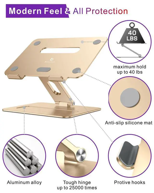 You: Brocoon macbook stand for desk comes with a variety of adjustable height and angle. This computer stand with ergonomic design can help you set up with the top of the screen at eye level and can prevent muscle fatigue and tension, eye strain and stay back pain-free, leading to fewer missed workdays and more productivity during work times. Laptop holder gives more flexibility in setting your workspace up to suit your requirements.