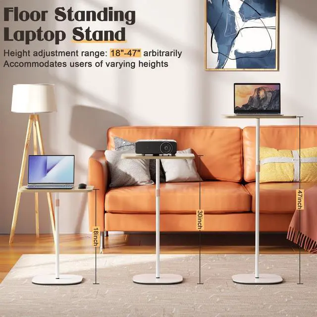 Portable Laptop Floor Stand, Portable Podium Stand with Height Adjustable 18''~47'', Stylish Movable Workstation Floor Standing Desk for Office, Meeting Room, Living Room