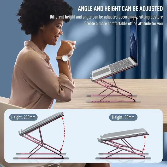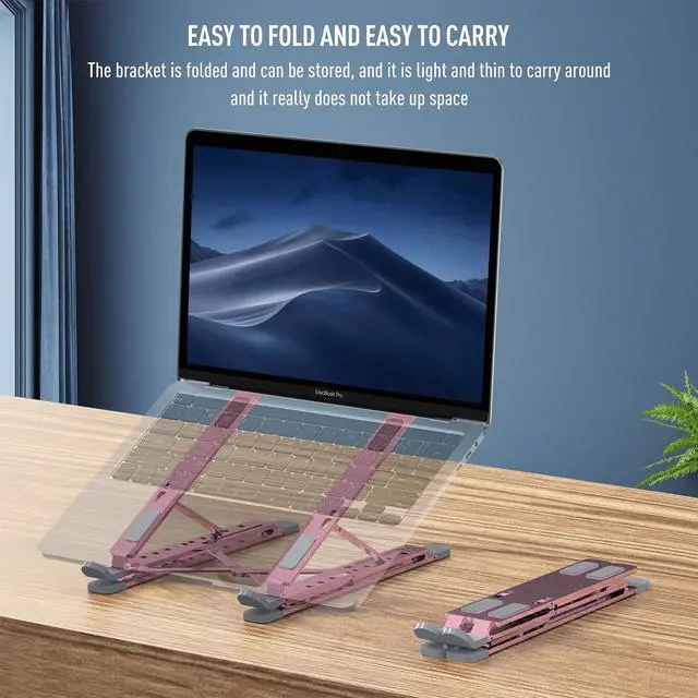 VAJUN Portable Laptop Riser, Adjustable Laptop Stand,Aluminum Laptop Stand for Desk Foldable, Ergonomic Computer Notebook Stand Holder for MacBook Air Pro, Dell XPS, HP (10-15.6'')(Pink)