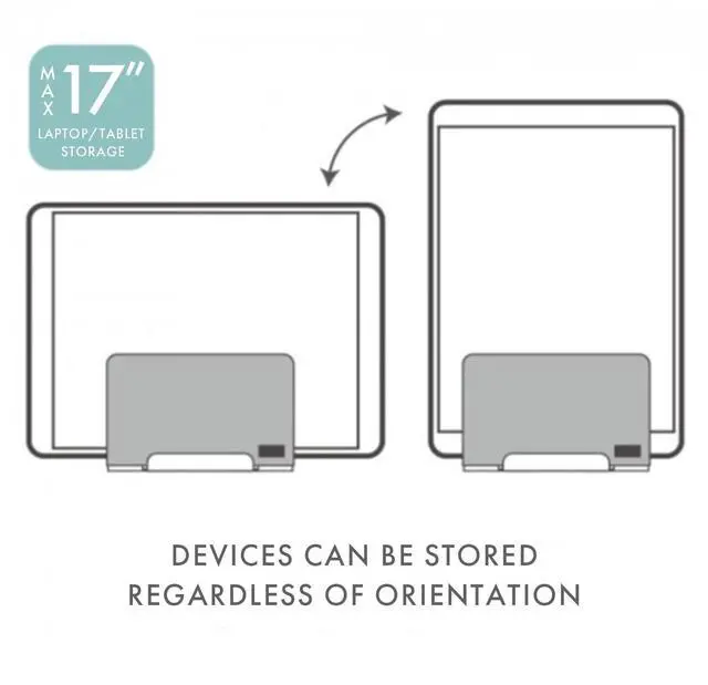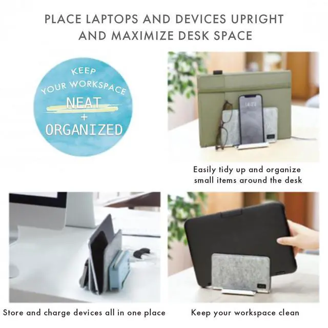 With a scratch-resistant felt cover, you can easily store your laptop or tablet while gently protecting your space. Durable steel material ensures stability even when placed on the device. The bottom is non-slip so you can use it with confidence. It can be used to switch between tasks in one desk and can be cleaned easily. By storing your laptop in a upright position, you can use it effectively without compressing your desktop space. It can also be used as a charging spot for storing your devices together. It can also be used for managing and storing your PC in a rack.