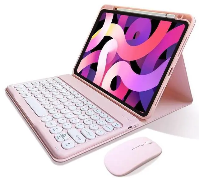 Multiple Viewing Angles & Removeable Magnetic Color Keyboard Bulit-in Rechargeable Keyboard . Cute round key, The magnetic wireless keyboard is removable .You can connect this Bluetooth keyboard to any other device with Bluetooth such as your iPhone ,iPad ,laptop,tablet or PC.Compatibile with IOS, Android and Windows System.