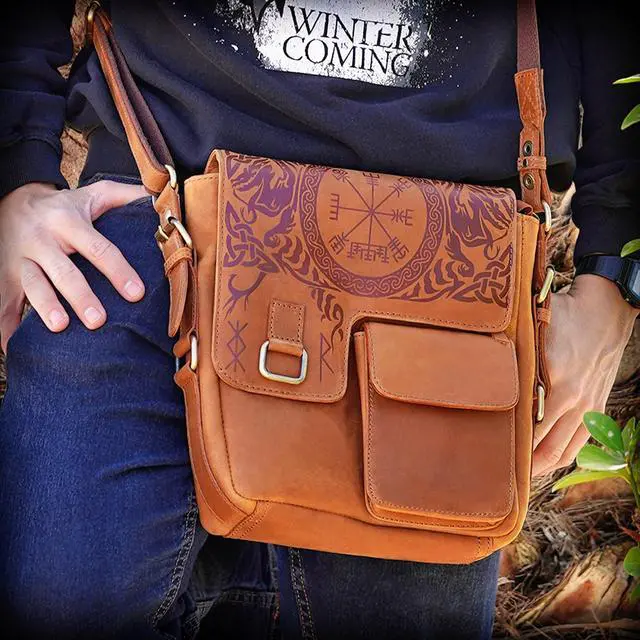 DescriptionMythrojan Messenger Leather Bag URBAN VIKING SATCHEL REAL LEATHER Messenger bag Vintage Celtic iPad Tablet Bag Cross Body Shoulder Bag. Handcrafted from genuine leather, each bag exudes durability, softness, and a distinctive vintage appeal that improves with age. Thoughtfully designed to accommodate modern needs, featuring multiple compartments for organizing essentials such as iPads, tablets, books, and personal items. Equipped with an adjustable shoulder strap, the satchel offers ergonomic comfort and versatility for carrying across the body or over the shoulder. Inspired by Celtic motifs and Viking heritage, the bag captures the essence of bold adventure and rugged style, suitable for urban warriors and modern-day explorers.