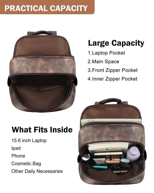 Premium Quality: This leather laptop backpack ensure durability with strict material and hardware selection. The women's leather backpack boasts high-quality workmanship.
