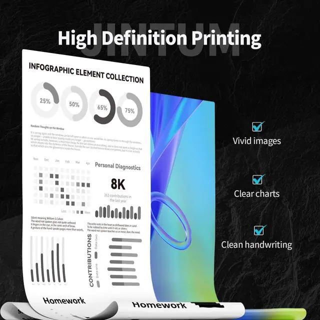 Unobstructed Printing: Ink smoothly prints crisp text and forms, prints bright colors, and reproduces true-to-life images