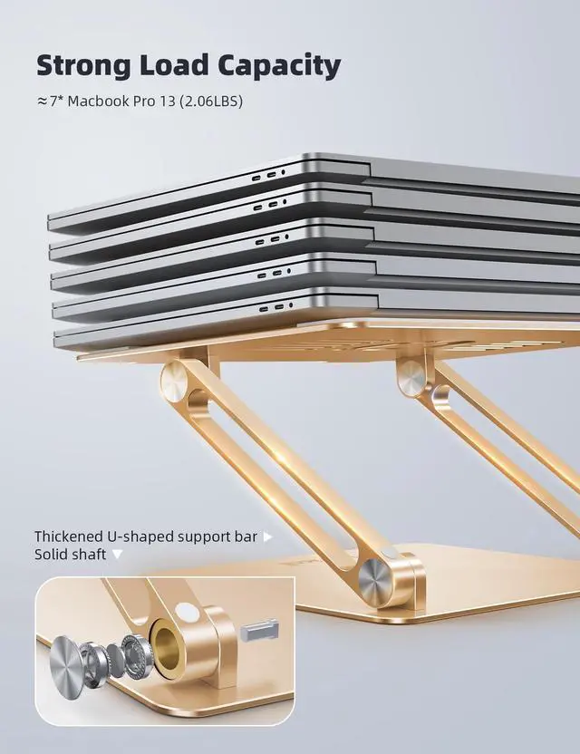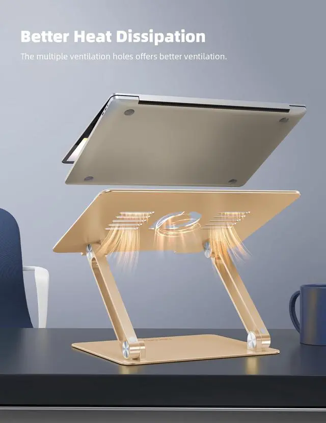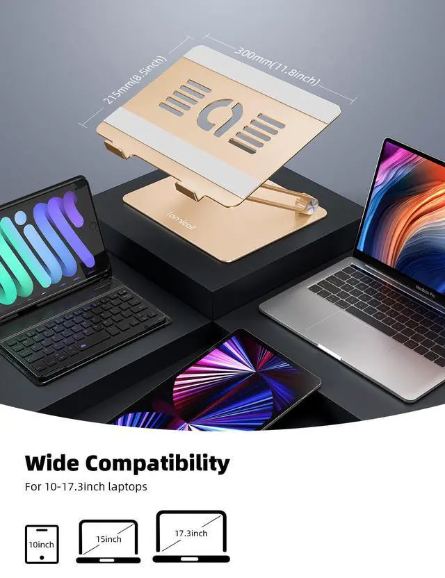 Wide Compatibility: The laptop stand for desk is compatible with all laptops from 10" up to 17.3", including popular models like MacBook, MacBook Air, MacBook Pro, Surface Laptop, Dell XPS, Google Pixelbook, HP, ASUS, Acer, Chromebook, Alienware, etc. ^^ Adjustable &
